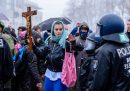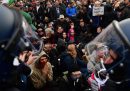 Gli agenti, in tenuta antisommossa, hanno poi cominciato a portare via alcuni partecipanti, e ci sono stati scontri e molti arresti: alcuni manifestanti hanno cominciato a lanciare fuochi d’artificio e altri oggetti, dirigendoli anche verso l’elicottero della polizia che li sorvolava.