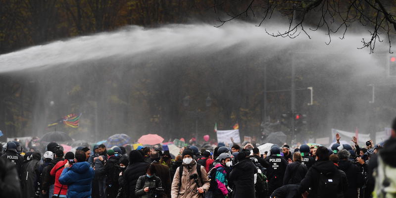 La polizia tedesca ha utilizzato cannoni ad acqua e lacrimogeni per disperdere i manifestanti che si erano raccolti tra l’edificio del Parlamento e la porta di Brandeburgo, a Berlino, per protestare contro le restrizioni legate ai tentativi di contenimento della pandemia da coronavirus. È successo dopo che i manifestanti avevano ignorato i richiami ripetuti della polizia, che chiedeva loro di indossare le mascherine e mantenere le distanze gli uni dagli altri.