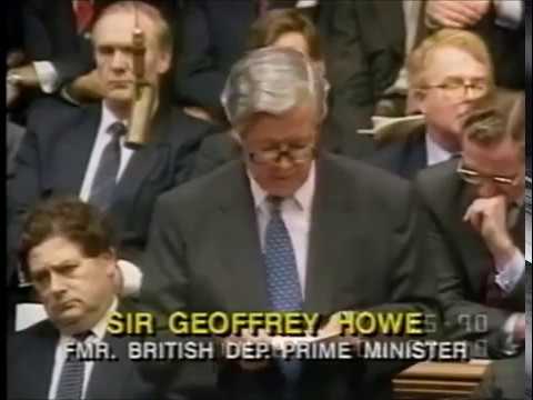 A chi è già arrivato in fondo alla quarta stagione, potrebbe interessare rivisitare il noto discorso con cui nel 1990 Geoffrey Howe si dimise da vice primo ministro, “tradendo” Margaret Thatcher e invitando altri a seguire il suo esempio. Come scrisse BBC dopo la sua morte, furono «le dimissioni che rovesciarono Thatcher».