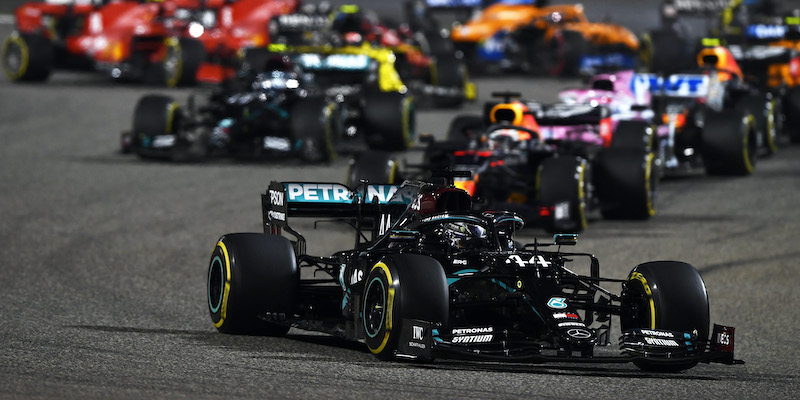 Il Gran Premio del Bahrain di Formula 1, corso domenica pomeriggio sul circuito di Manama, è stato vinto da Lewis Hamilton, che al traguardo ha preceduto le Red Bull di Max Verstappen e Alexander Albon. Il pilota inglese della Mercedes aveva già vinto matematicamente il titolo mondiale — per la settima volta in carriera — nell’ultima gara corsa in Turchia: quello ottenuto oggi è il suo 95esimo primo posto in 264 gare disputate. La conclusione del Gran Premio del Bahrain è stata ritardata di un’ora a causa del grave incidente che ha coinvolto Romain Grosjean poco dopo la partenza. Per le Ferrari è stata un’altra gara decisamente negativa in questo Campionato mondiale: Charles Leclerc è arrivato decimo, Sebastian Vettel tredicesimo.