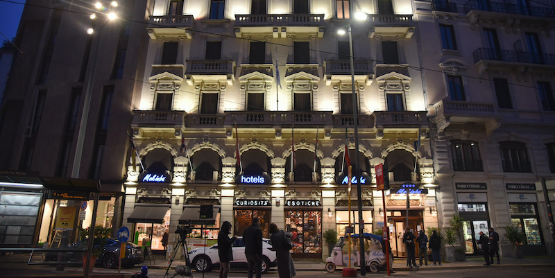 La facciata dell’hotel King, in centro a Milano (Ansa/Matteo Corner)