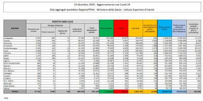 I dati sul coronavirus di oggi, lunedì 14 dicembre