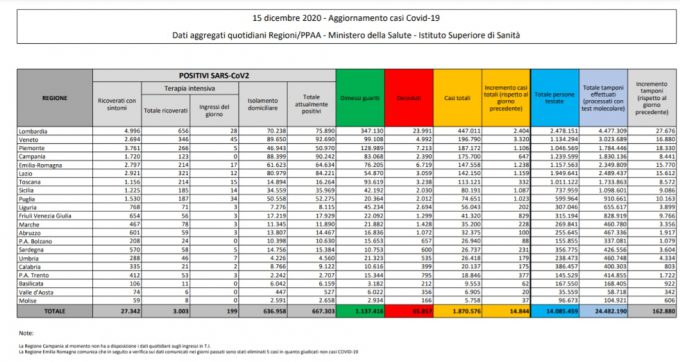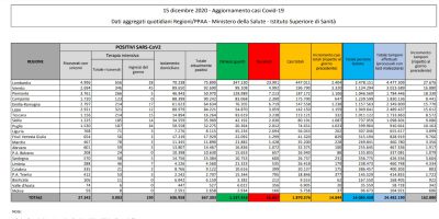 I dati sul coronavirus di martedì 15 dicembre