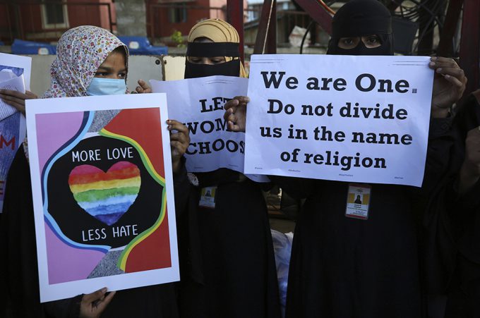 Proteste contro la legge anti-conversione dell’Uttar Pradesh, Bengaluru, 1 dicembre 2020 (AP Photo/Aijaz Rahi)