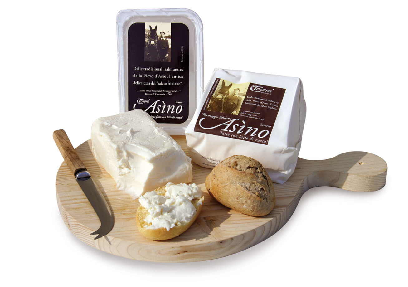 Tosoni è un caseificio della provincia di Pordenone che esiste da ottant’anni e rifornisce tutti i principali negozi di formaggi della zona. Tra i più apprezzati dei loro prodotti c’è innanzitutto l’Asìno, un formaggio di origine celtica di cui Tosoni è l’unico produttore rimasto. Una curiosità da giocarsi al momento dello scarto è che il latte d’asina non c’entra (è fatto col latte di mucca), ma il formaggio si chiama così perché viene dai monti della Pieve d’Asio. La lavorazione avviene immergendo formaggelle fresche in una salamoia di latte, panna e sale detta salmùerie per circa 20 giorni. Secondo la tradizione friulana andrebbe accompagnato con la polenta o con le patate lesse, ma i produttori dicono che può avere anche altri abbinamenti: con le verdure, nella fonduta, sulla carne o sciolto in una frittata.