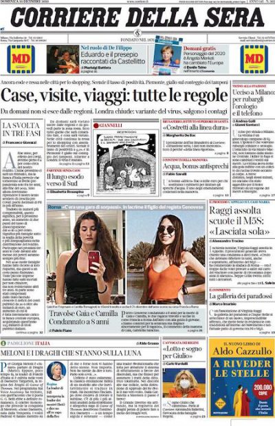 Le prime pagine di domenica 20 dicembre 2020