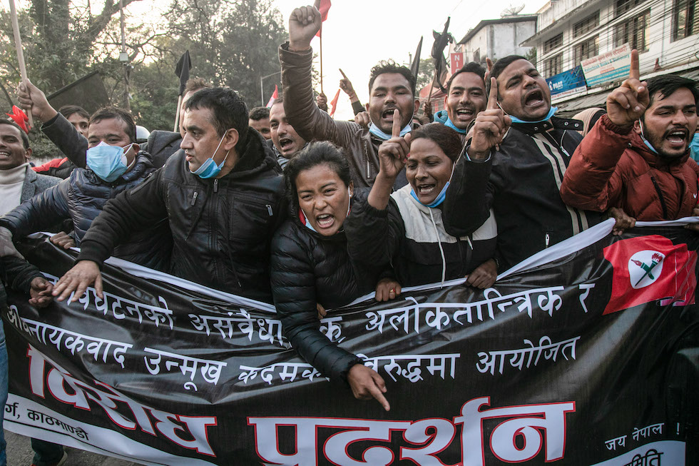 Messo sostanzialmente in minoranza nel suo partito, Oli ha consigliato alla presidente di sciogliere la Camera per evitare un voto di sfiducia nei suoi confronti che probabilmente avrebbe portato Dahal a diventare primo ministro. Non appena lo ha fatto, sette dei 25 ministri del governo (tutti vicini a Dahal) si sono dimessi per protesta. Molti esperti però hanno sollevato dubbi di costituzionalità sull’azione di Oli, dato che la Costituzione nepalese, in vigore dal 2015, non permette a un primo ministro della maggioranza di consigliare uno scioglimento della Camera, tanto più se governa con due terzi della maggioranza. Se la decisione fosse giudicata incostituzionale, potrebbe essere impugnata dalla Corte Suprema del Nepal.