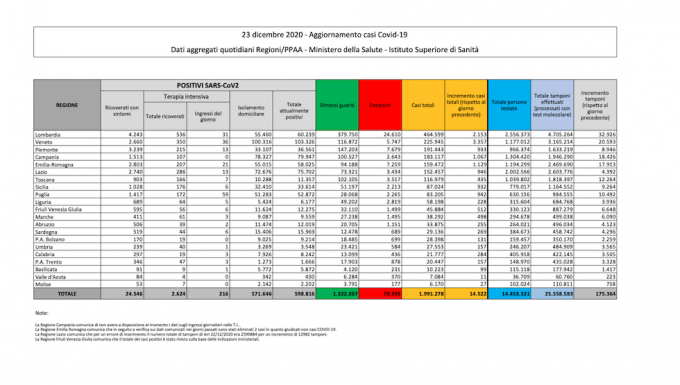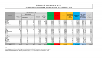 I dati sul coronavirus di oggi, mercoledì 23 dicembre