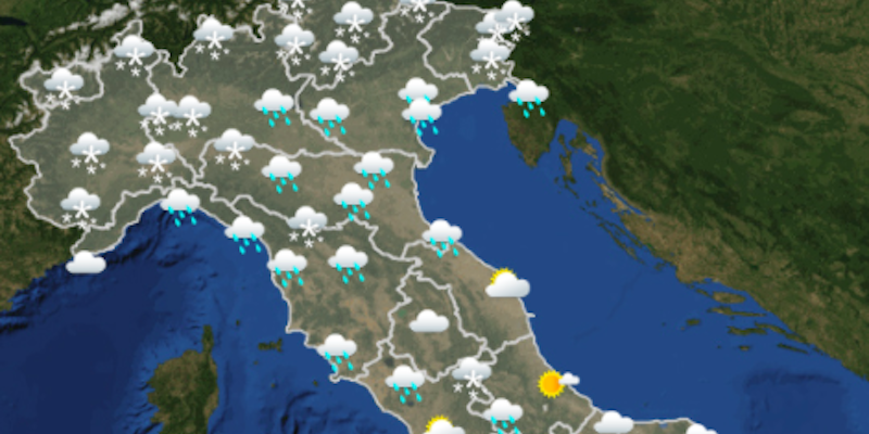 Secondo le previsioni meteo dell’Aeronautica Militare, lunedì 28 dicembre sarà una giornata con brutto tempo un po’ ovunque: per tutta la mattina nevicherà sull’arco alpino, quindi in tutte le regioni del Nord, mentre al Centro e al Centro-Nord pioverà. Di pomeriggio pioverà ancora nelle regioni centrali e in Sardegna, mentre al Sud sarà soleggiato. Di sera il tempo peggiorerà anche in Campania, Molise e Puglia, mentre di notte dovrebbe piovere in Umbria, Toscana, Basilicata e in provincia di Napoli.