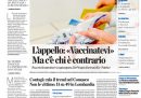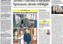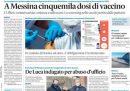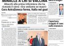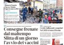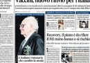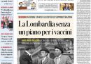 Tutti i giornali di oggi si occupano in apertura delle notizie sul vaccino per il coronavirus, con la gestione delle prime dosi dopo l’inizio simbolico della campagna di vaccinazione di domenica scorsa, la discussione nel governo sull’obbligatorietà della vaccinazione, il nuovo acquisto da parte dell’Unione Europea di cento milioni di dosi da Pfizer-BioNTech, e il rinvio della richiesta di approvazione del vaccino di AstraZeneca.