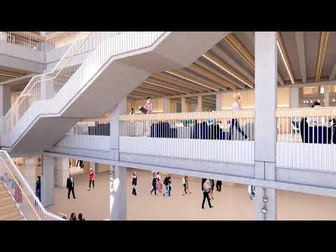 È il primo edificio disegnato in Regno Unito dallo studio di irlandese Grafton Architects, che quest’anno ha ricevuto la medaglia d’oro del Royal Institute of British Architects (RIBA) ed è conosciuto anche per aver curato la Biennale di architettura di Venezia nel 2018. La Town House è un centro di studio e di incontro per gli studenti e gli insegnanti dell’università e per gli abitanti della zona: ospita la biblioteca principale, gli archivi, un giardino coperto, un teatro, stanze riservate alla danza, aule da studio e da lettura e due bar. I suoi sei piani sono incorniciati da una struttura in cemento e vetrate, che danno un senso di apertura, accoglienza e socialità. Il Guardian lo ha definito «un parco giochi per studenti; una piazza tridimensionale per quando la vita sociale riprenderà; generoso e pieno di dignità».