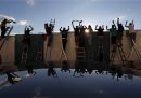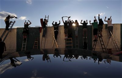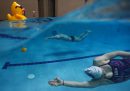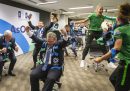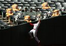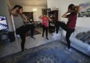 Come ogni anno nella raccolta delle foto sportive degli ultimi 12 mesi ci sono un po’ delle notizie che li hanno riempiti: chi ha vinto il Tour de France, chi la Champions League e chi l’NBA. La storica partita di Seria A tra le squadre femminili di Milan e Juventus a San Siro, e le morti di Kobe Bryant e di Diego Armando Maradona. Per la prima volta, a causa della pandemia da coronavirus, ci sono anche spalti che sono rimasti vuoti per settimane intere per poi essere riempiti con cartonati di tifosi, e quegli stessi tifosi che si sono inventati nuovi modi di seguire le loro squadre, con drive-in fuori dagli stadi o arrampicandosi per cercare di vedere qualcosa all’interno. E poi una cosa con cui ci siamo misurati tutti: lo stare a casa, che sia per le persone normali e ancor di più per gli atleti ha significato imparare a continuare a muoversi in spazi ristretti e trovare un modo per rimanere allenati, che fosse creare bilancieri di legno, usare il garage come palestra o mettere una canoa in piscina.