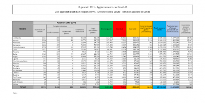 I dati sul coronavirus in Italia di oggi, martedì 12 gennaio