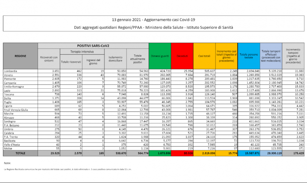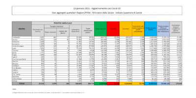 I dati sul coronavirus in Italia di oggi, mercoledì 13 gennaio