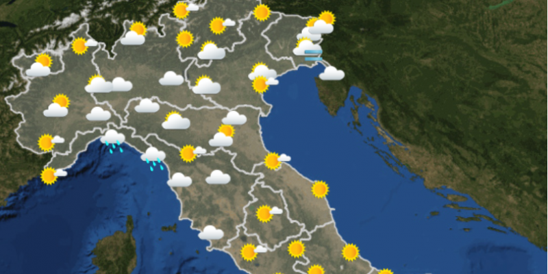 Secondo il servizio meteorologico dell’Aeronautica Militare, martedì 19 gennaio al Nord sarà una giornata per lo più nuvolosa, con nebbie in pianura al mattino e la notte e piogge in Liguria dalla tarda mattinata. Nel pomeriggio sarà più soleggiato, come al Centro, dove però si prevedono nuvole su Lazio e Umbria e qualche pioggia in Toscana, con nevicate nella zona appenninica in serata. Al mattino sarà nuvoloso anche in Sardegna, dove la situazione migliorerà dal pomeriggio, mentre al Sud sarà una giornata soleggiata, con qualche rannuvolamento a partire dalla serata su Molise, Basilicata e Sicilia occidentale, e piogge sparse in Campania.