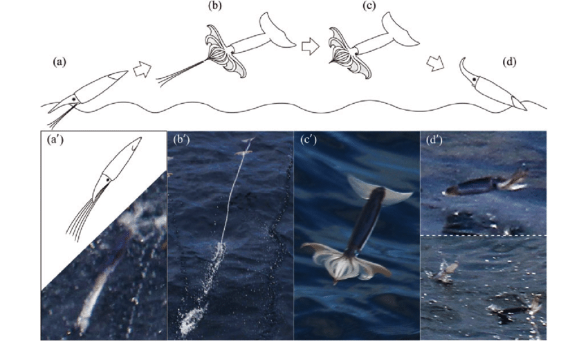 Anche se esistono poche prove fotografiche del volo di totani e calamari, non ci sono dubbi sul fatto che siano in grado di volare o planare. Alcuni biologi hanno studiato il fenomeno partendo dalla loro anatomia e dal comportamento in laboratorio: per decenni Ronald O’Dor, biologo marino della Dalhousie University di Halifax, in Canada, tenne dei totani atlantici (Illex illecebrosus) in una piscina di 15 metri e studiò il modo in cui erano capaci di saltare fuori dall’acqua.