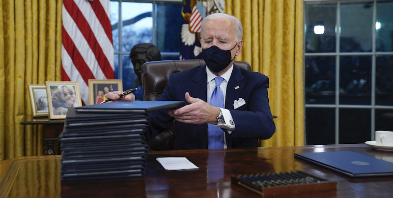 A poche ore dal giuramento come presidente degli Stati Uniti, Joe Biden ha firmato 17 ordini esecutivi per smantellare alcune decisioni prese dalla precedente amministrazione di Donald Trump e per affrontare in modo più deciso l’emergenza causata dal coronavirus. Come ha spiegato ai giornalisti nello Studio Ovale, «non c’è miglior momento per iniziare che questo».