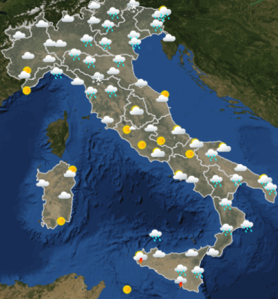 Secondo il servizio meteorologico dell’Aeronautica Militare, sabato sarà una giornata con tempo variabile e piogge diffuse un po’ dappertutto. In mattinata pioverà nel Nord-Est, in Emilia-Romagna, Liguria centro-orientale e al Sud (con temporali in Sicilia), mentre nel Nord-Ovest e nel Centro sarà coperto o poco nuvoloso. Nel pomeriggio ci saranno ancora piogge in Friuli, Veneto orientale e al Sud e peggiorerà al Centro. Alla sera migliorerà quasi ovunque e nella notte ci saranno piogge sparse soltanto in Friuli, nelle aree interne della Toscana, con nevicate sull’Appennino tosco-emiliano, e nell’area fra Lazio meridionale e Campania settentrionale.