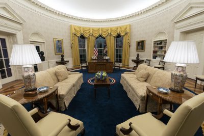Com’è consuetudine a ogni insediamento di un nuovo presidente degli Stati Uniti, il 20 gennaio, dopo il giuramento di Joe Biden come presidente, lo Studio Ovale, cioè l’ufficio presidenziale nella Casa Bianca, è stato riarredato. Dopo poche ore da quando il presidente uscente Donald Trump aveva abbandonato la Casa Bianca, lo Studio Ovale è stato modificato secondo i gusti di Biden. Le modifiche all’arredo non sono solo estetiche, ma riflettono anche il pensiero politico del presidente di turno.