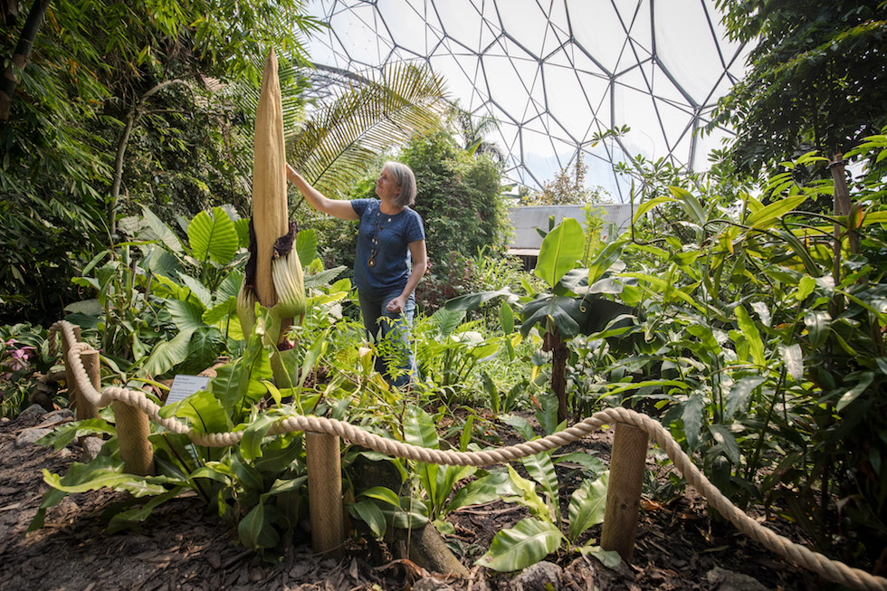 Raccolta del polline di un aro titano nell’orto botanico dell’Eden Project (Matt Cardy/Getty Images)