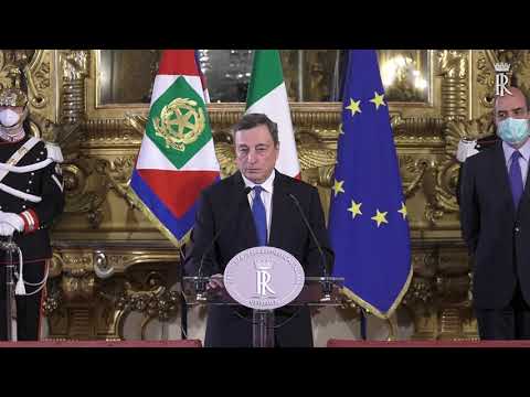 «È un momento difficile» ha detto Draghi riferendosi alla crisi sanitaria, economica e sociale: «la consapevolezza dell’emergenza richiede risposte all’altezza della situazione, ed è con questa speranza e con questo impegno che rispondo positivamente all’appello del presidente della Repubblica». Ha poi continuato: «Vincere la pandemia, completare la campagna vaccinale, offrire risposte ai problemi dei cittadini, rilanciare il paese, sono le sfide che ci confrontano. Abbiamo a disposizione le risorse straordinarie dell’Unione Europea, abbiamo la possibilità di fare molto per il nostro paese, con uno sguardo attento al futuro delle giovani generazioni e al rafforzamento della coesione sociale».