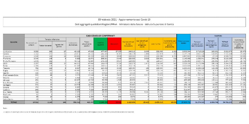 I dati sul coronavirus in Italia di oggi, martedì 9 febbraio