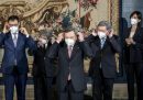 Si è concluso al palazzo del Quirinale il giuramento di fedeltà alla Repubblica del nuovo governo guidato da Mario Draghi. Venerdì sera Draghi aveva accettato l’incarico di formare un nuovo governo che gli era stato affidato dal presidente della Repubblica Sergio Mattarella e aveva annunciato i ministri che lo avrebbero composto. Sia Draghi sia i nuovi ministri sono entrati in carica ufficialmente alla fine del giuramento. La cerimonia si può rivedere nel video della presidenza della Repubblica.