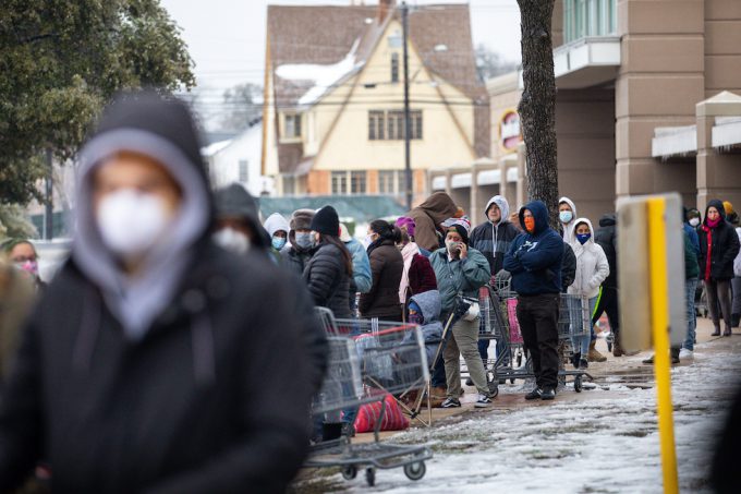 Una fila di persone in coda per fare la spesa dopo i blackout degli ultimi giorni, a Austin, Texas (Montinique Monroe/Getty Images)