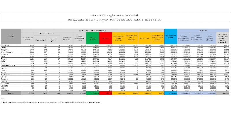 I dati sul coronavirus in Italia di oggi, martedì 9 marzo