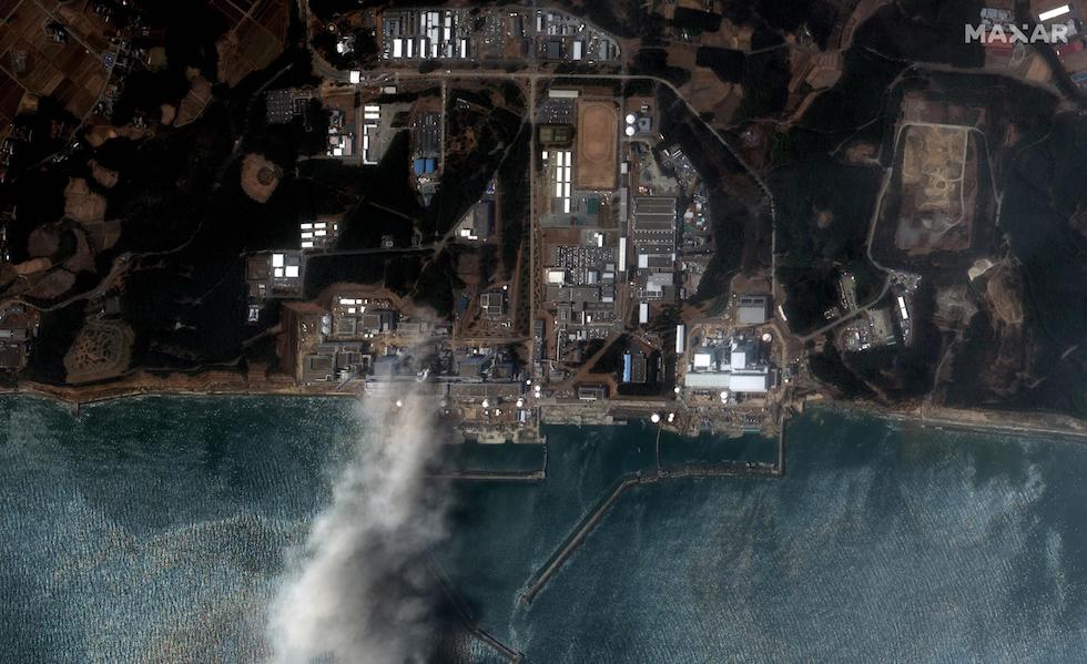 Un’immagine satellitare che mostra la centrale di Fukushima Daiichi il 14 marzo 2011 (EPA/MAXAR TECHNOLOGIES / HANDOUT, ANSA)