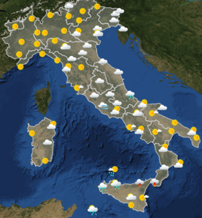 Secondo il servizio meteorologico dell’Aeronautica militare, martedì 16 marzo in Italia sarà una giornata prevalentemente serena o poco nuvolosa al Centro-Nord e molto nuvolosa con piogge al Sud. Al mattino ci saranno piogge isolate in Abruzzo e temporali in Sicilia. Nel pomeriggio pioverà praticamente ovunque al Sud, con temporali in Campania e Sicilia. Alla sera il tempo migliorerà e ci saranno piogge residue soltanto in Calabria e nella Sicilia orientale.