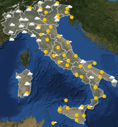 Secondo il servizio meteorologico dell’Aeronautica militare, mercoledì 17 marzo in Italia sarà una giornata con tempo variabile. Al mattino sarà molto nuvoloso nel Nord Ovest e sereno altrove, con piogge sparse nella Sardegna Nord Occidentale. Al pomeriggio la nuvolosità si estenderà al Centro e le piogge alla Sardegna interna. Alla sera il cielo sarà parzialmente nuvoloso anche al Sud, con piogge nella Sicilia occidentale.