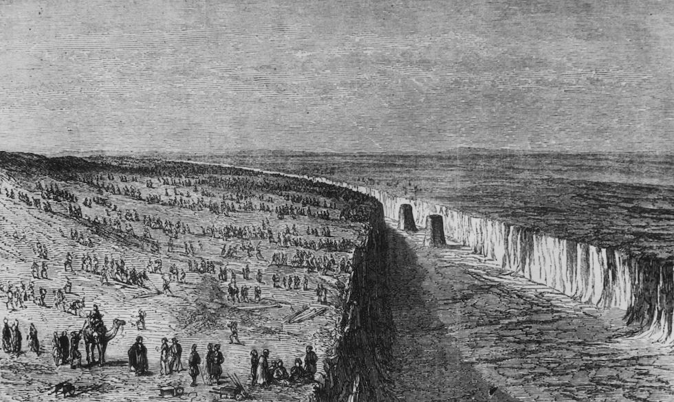 La costruzione cominciò nel 1859, durò dieci anni e si svolse in condizioni terribili: morirono migliaia di lavoratori, in gran parte egiziani costretti al lavoro forzato, soprattutto a causa delle epidemie di colera e altre malattie che si diffusero nei cantieri. L’inaugurazione, il 17 novembre del 1869, fu un grande evento a cui partecipò un’ampia rappresentanza dell’aristocrazia europea, tra cui l’imperatore austriaco Francesco Giuseppe.