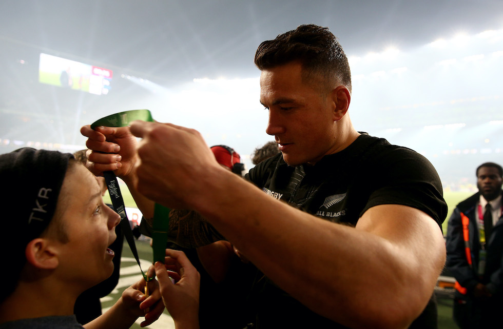 Sonny Bill Williams regala la sua medaglia d’oro vinta alla Coppa del Mondo del 2015 a un bambino tra il pubblico di Twickenham (Getty Images)