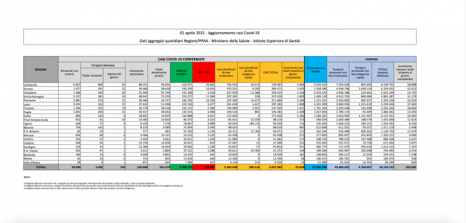 I dati sul coronavirus in Italia di oggi, giovedì 1 aprile
