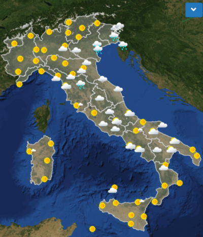 Le previsioni del Servizio Meteorologico dell’Aeronautica Militare indicano che martedì sarà una giornata prevalentemente piovosa e nuvolosa: di mattina pioverà in Veneto, in Friuli Venezia Giulia e in provincia di Firenze, mentre di pomeriggio in buona parte del Centro-Nord, in Lombardia orientale e in Calabria. Di sera ci saranno schiarite al Centro ma comincerà a piovere in Puglia (in provincia di Foggia), in Molise e in Abruzzo. Infine di notte pioverà anche in Salento, sempre in Puglia, e di nuovo in alcune zone della Calabria
