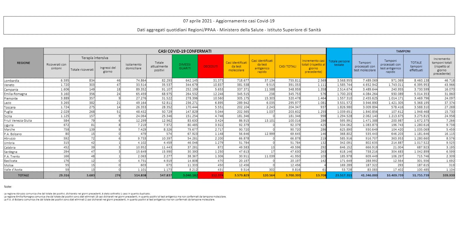 I dati sul coronavirus in Italia di oggi, mercoledì 7 aprile