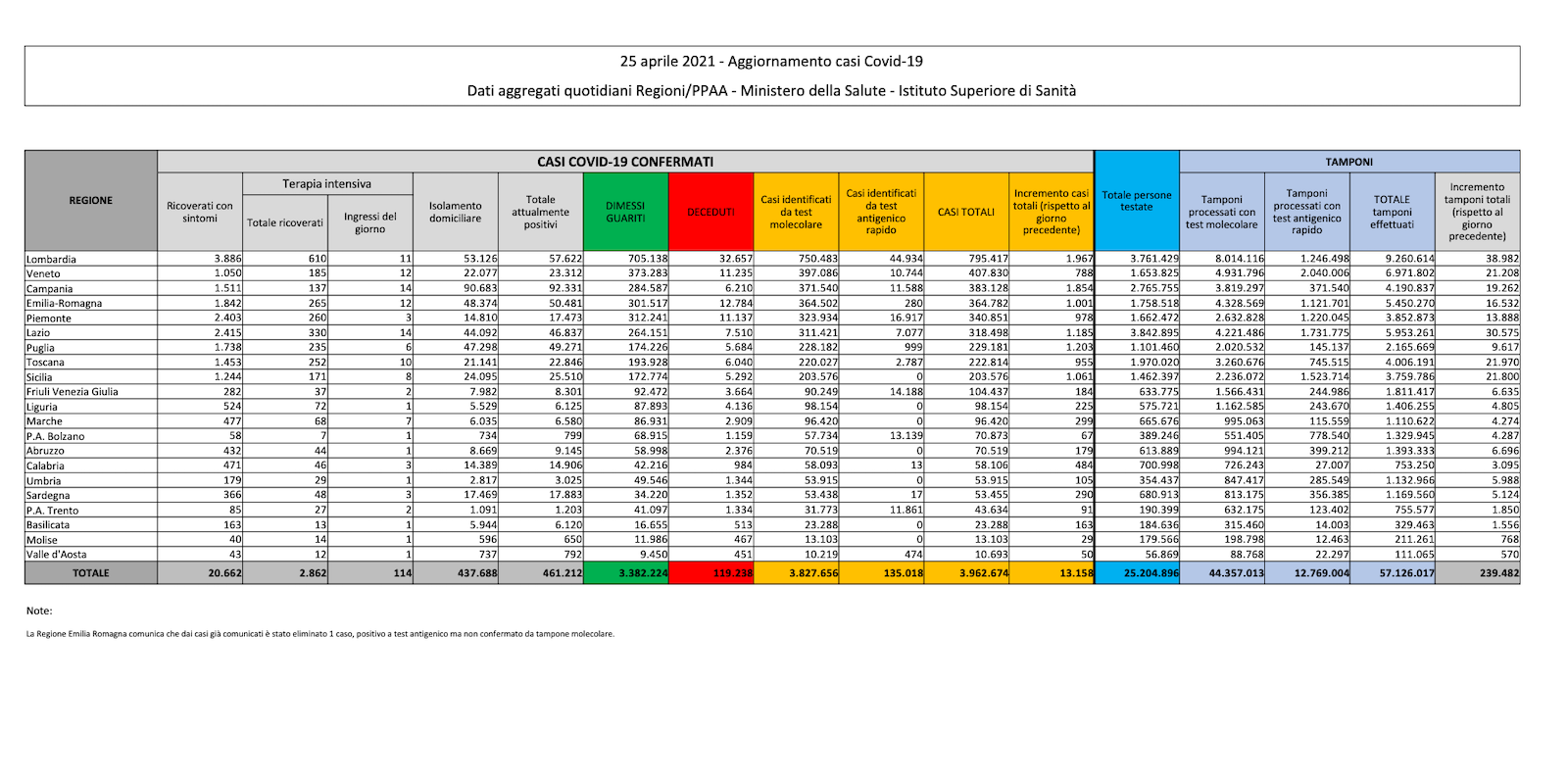 I dati sul coronavirus in Italia di oggi, domenica 25 aprile