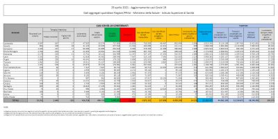 I dati sul coronavirus in Italia di oggi, giovedì 29 aprile