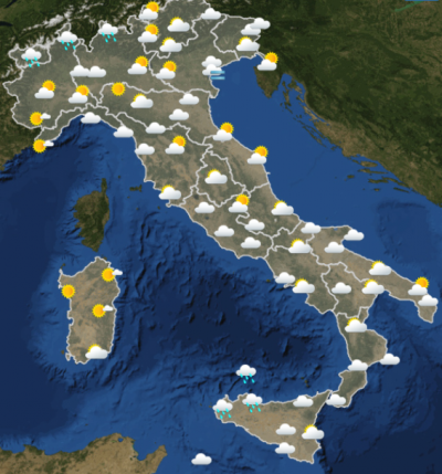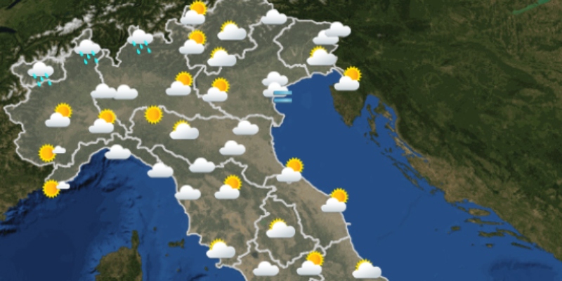 Secondo il servizio meteorologico dell’Aeronautica militare, mercoledì 5 maggio in Italia sarà una giornata dal tempo variabile, prevalentemente serena o poco nuvolosa al Nord e molto nuvolosa al Centro-Sud. Al mattino pioverà in Valle d’Aosta, alto Piemonte e alta Lombardia e in Sicilia. Al pomeriggio sono previste piogge sparse in Trentino, Friuli, Calabria e nel Gargano. Dal pomeriggio la situazione migliorerà quasi ovunque, con piogge residue soltanto in Trentino e Friuli.