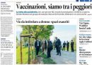 La maggior parte dei quotidiani di oggi si occupa in apertura della discussione fra i vari paesi e le organizzazioni internazionali sui brevetti dei vaccini per il coronavirus, dopo l’annuncio del presidente degli Stati Uniti Biden di volerne sospendere la validità per contrastare più efficacemente la diffusione del virus. Altri giornali titolano sull’annuncio del commissario straordinario Figliuolo di far partire da lunedì le prenotazioni per le vaccinazioni a chi ha più di 50 anni, mentre il Giornale apre sugli spari della Guardia costiera libica contro due pescherecci italiani, Libero e Domani seguono le notizie sulla magistratura, e la Verità e il Tempo criticano il disegno di legge Zan.