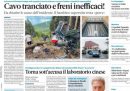 Le notizie principali in apertura sui quotidiani di oggi sono due: le indagini alla ricerca delle cause dell’incidente di domenica alla funivia Stresa-Mottarone nel quale sono morte 14 persone, e la decisione del governo di modificare la proroga del blocco dei licenziamenti, consentendo alle imprese che non usufruiscono della cassa integrazione di poter licenziare a partire dal 1° luglio. La Stampa apre invece sulle foto dei migranti morti dopo il naufragio di un’imbarcazione sulle coste della Libia, mentre Domani si occupa delle modalità di gestione dei fondi del Recovery Plan da parte del governo.
