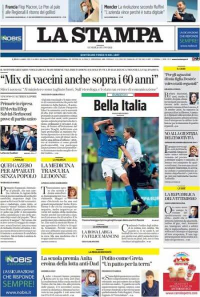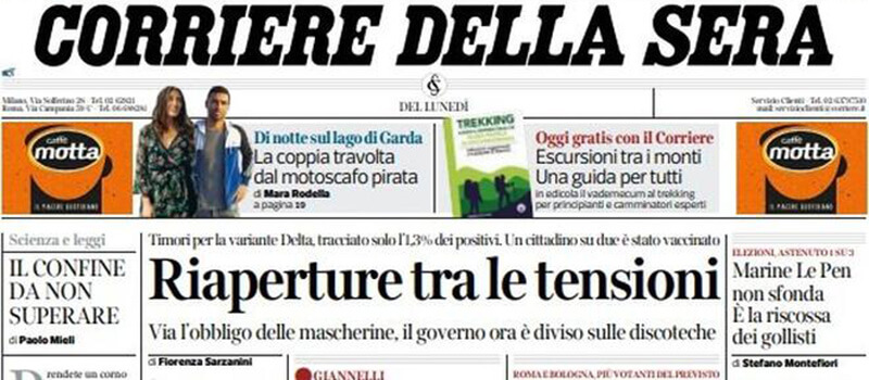 Le prime pagine di lunedì 21 giugno 2021