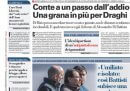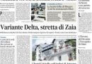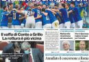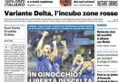 I titoli di apertura dei giornali di oggi riguardano principalmente due notizie: le divisioni nel Movimento 5 Stelle sulla proposta di modificarne lo statuto dell’ex presidente del Consiglio Conte, che secondo le indiscrezioni sarebbe pronto a lasciare il partito, e le notizie sul coronavirus, con i dati sulla diffusione della variante delta che preoccupano e l’andamento della campagna di vaccinazione. Il Manifesto apre invece sulle manifestazioni sindacali di oggi contro la rimozione del blocco dei licenziamenti, mentre i giornali sportivi presentano la partita di stasera per gli ottavi di finale degli Europei di calcio fra Italia e Austria.