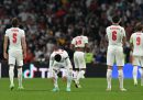 Dopo i tempi supplementari conclusi ancora in parità, ai calci di rigore Berardi ha segnato il primo, poi Belotti si è fatto parare il secondo e dopo quello segnato da Bonucci, l’Italia è tornata in parità grazie al palo colpito da Rashford. Poi ha segnato Bernardeschi, e Donnarumma ha parato il quarto rigore inglese, di Sancho. Jorginho ha sbagliato quello successivo, potenzialmente decisivo, ma poi Donnarumma ha di nuovo parato su Saka, dando la vittoria all’Italia. Grazie a questa prestazione, Donnarumma è stato eletto miglior giocatore del torneo. Bonucci è stato scelto invece come uomo partita.
