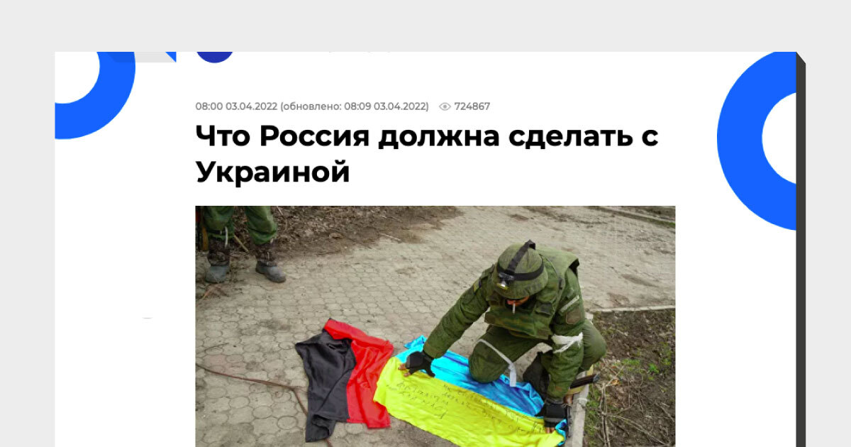 Il 3 aprile il sito di RIA Novosti, una delle principali agenzie di stampa russe, controllata dallo stato, ha pubblicato un articolo d’opinione intitolato «Cosa dovrebbe fare la Russia con l’Ucraina», che ha provocato reazioni molto dure in alcuni paesi occidentali per il modo esplicito e crudo in cui l’autore descrive come dovrebbe avvenire il processo di “denazificazione” dell’Ucraina. La “denazificazione” è uno degli obiettivi espliciti dell’invasione citati dal presidente russo Vladimir Putin, che sostiene falsamente che l’Ucraina sia dominata da un regime nazista.