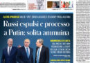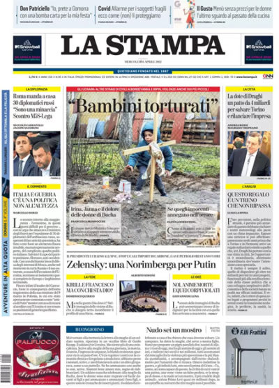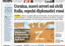 La maggior parte dei giornali di oggi titola in apertura sul discorso del presidente ucraino Zelensky al Consiglio di Sicurezza dell’ONU, nel quale ha parlato del massacro di Bucha e delle violenze delle truppe russe sui civili in Ucraina, accusando l’ONU di non aver fatto nulla per fermare il conflitto nel paese, e ha chiesto un processo per i responsabili dei crimini di guerra. Le altre notizie principali sulla guerra fra Russia e Ucraina sono l’annuncio del ministro degli Esteri Di Maio della decisione del governo italiano di espellere 30 diplomatici russi, come conseguenza dell’invasione, e la proposta fatta dalla Commissione Europea di nuove sanzioni alla Russia dopo la scoperta dei massacri a Bucha, che prevedono la sospensione delle importazioni di carbone ma non di quelle di gas naturale e petrolio, su cui i paesi europei sono divisi.