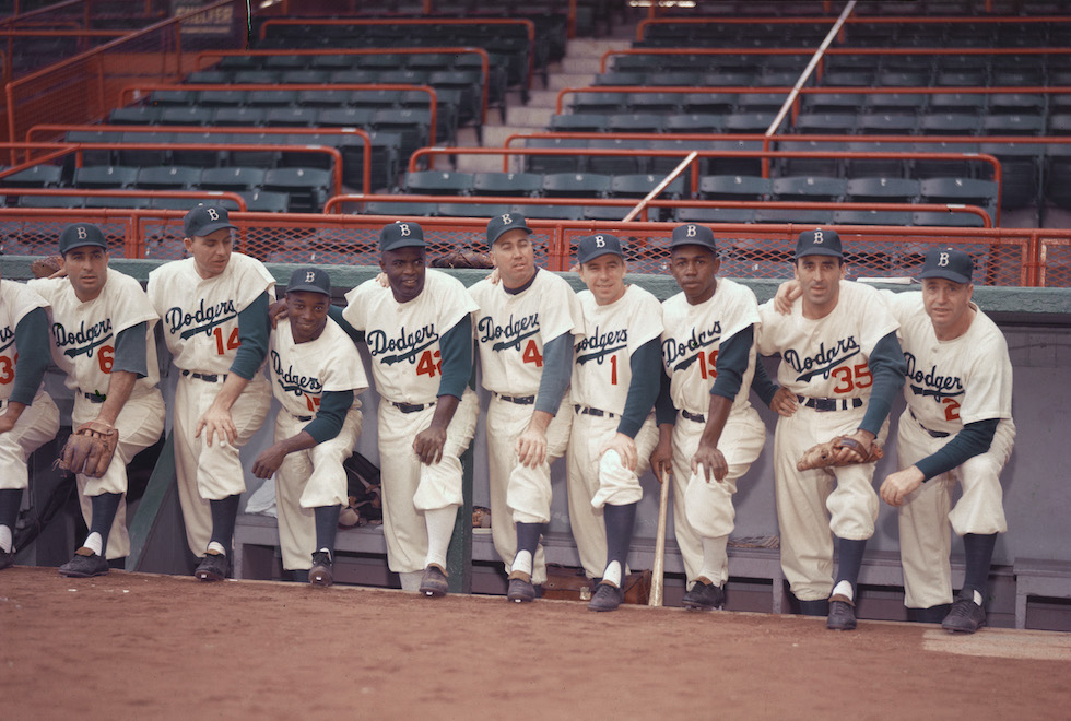 Robinson — quinto da sinistra — con i Dodgers nel 1954 (Hulton Archive/Getty Images)