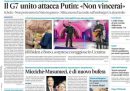 La maggior parte dei giornali di oggi titola in apertura sulla riunione del G7 svoltasi ieri con la partecipazione del presidente ucraino Zelensky, chiusa con la richiesta di maggiori sanzioni verso la Russia e l’impegno ad inviare nuovi aiuti militari all’Ucraina. Le altre notizie sulla guerra in Ucraina sono il bombardamento di una scuola a Luhansk nella quale ci sarebbero 60 dispersi, il mancato accordo fra i paesi dell’Unione Europea sul blocco delle importazioni di petrolio russo, e il concerto improvvisato di Bono e The Edge degli U2 nella metropolitana di Kiev. I giornali sportivi aprono sulla vittoria a Verona del Milan, che si riporta in testa alla classifica di Serie A con 2 punti di vantaggio sull’Inter a due giornate dalla fine del campionato.