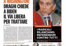 Tutti i giornali di oggi si occupano in apertura del viaggio a Washington del presidente del Consiglio Draghi e del suo incontro con il presidente degli Stati Uniti Biden, al termine del quale i due hanno sottolineato i legami fra le due amministrazioni e Draghi ha chiesto a nome dell’Europa un maggiore impegno per una soluzione diplomatica alla guerra fra Russia e Ucraina. Fanno eccezione il Fatto, che critica le scelte del governo sulle forniture di armi all’Ucraina, e Libero, che difende gli alpini dalle accuse di molestie durante l’adunata di Rimini nello scorso fine settimana, mentre i giornali sportivi presentano la finale di Coppa Italia fra Inter e Juventus che si gioca stasera a Roma.